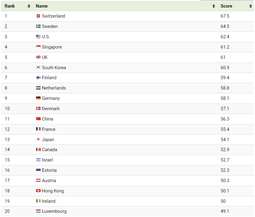 • 스위스, 14년 연속 세계 최고 혁신국가 1위 차지