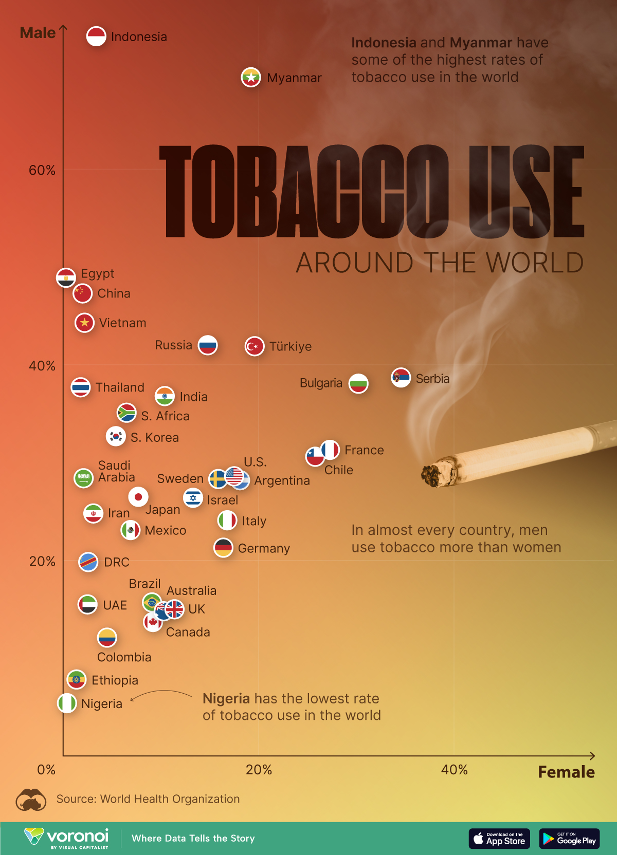 Source : Visual Capitalist, Charting Global Tobacco Use by Country and Sex