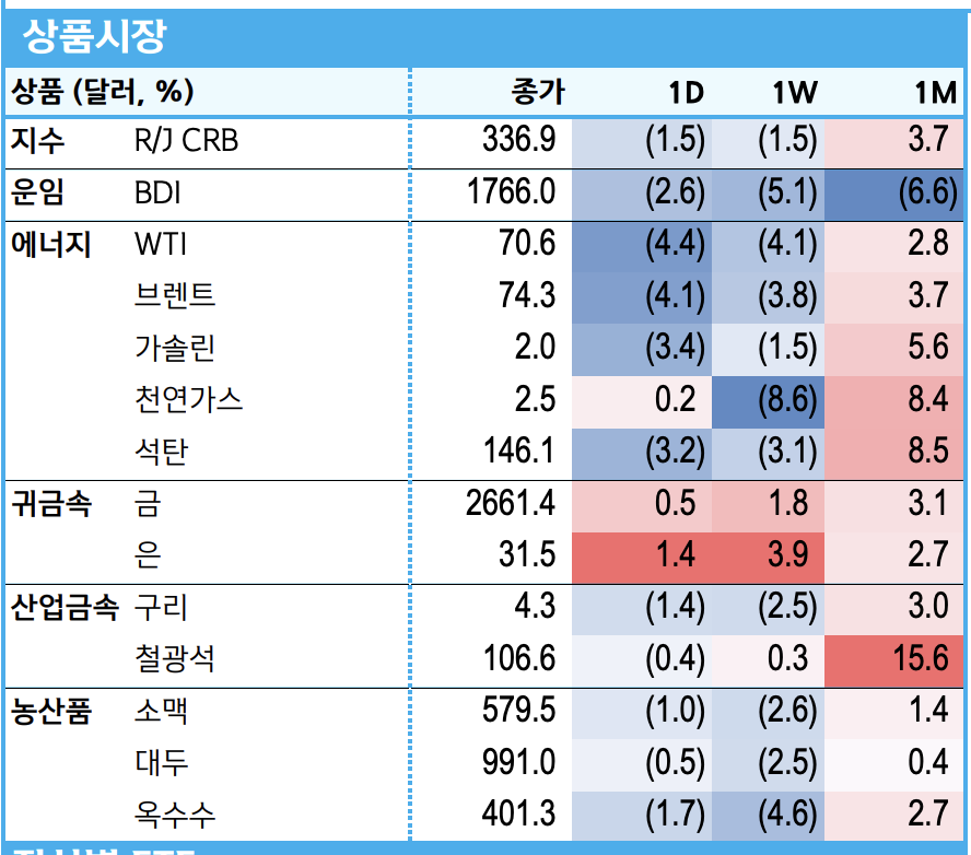 [상품시장 동향] WTI 4.4% 급락한 70.58달러. 이스라엘-이란 갈등 완화 기대감 반영.