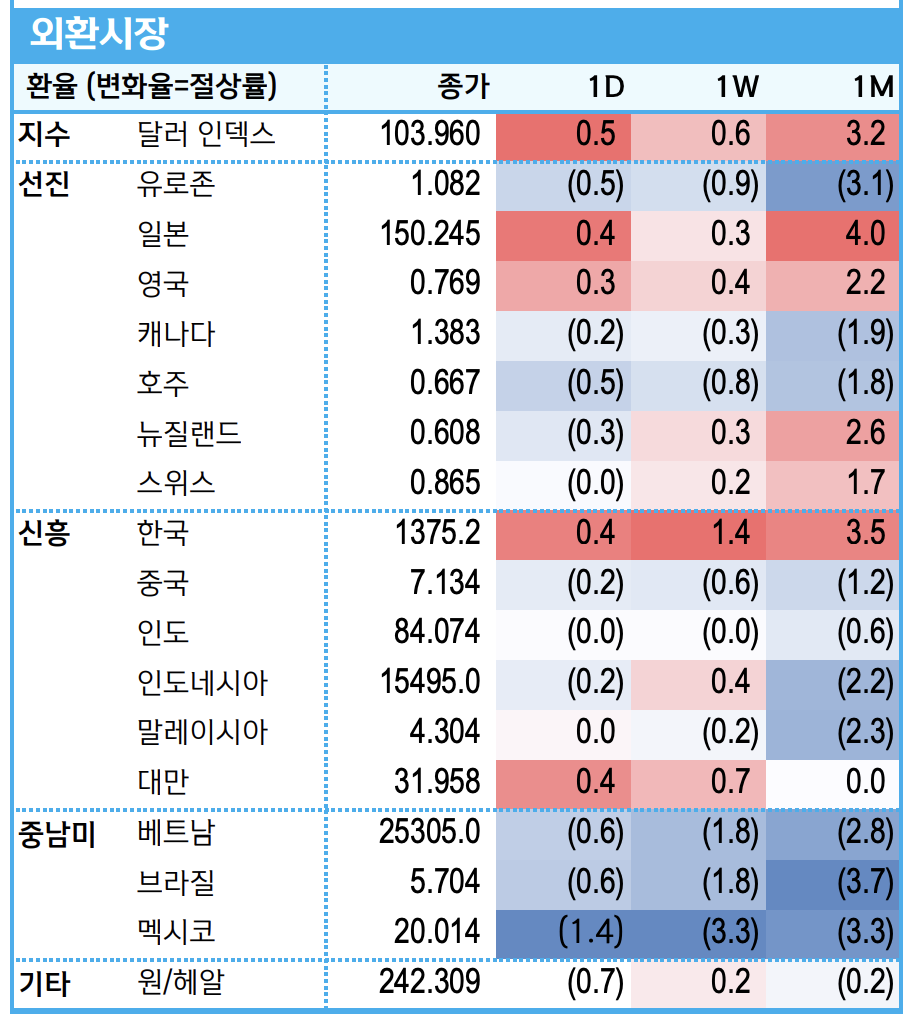 - 금: 2,723.1달러(+0.3%), 안전자산 선호 지속