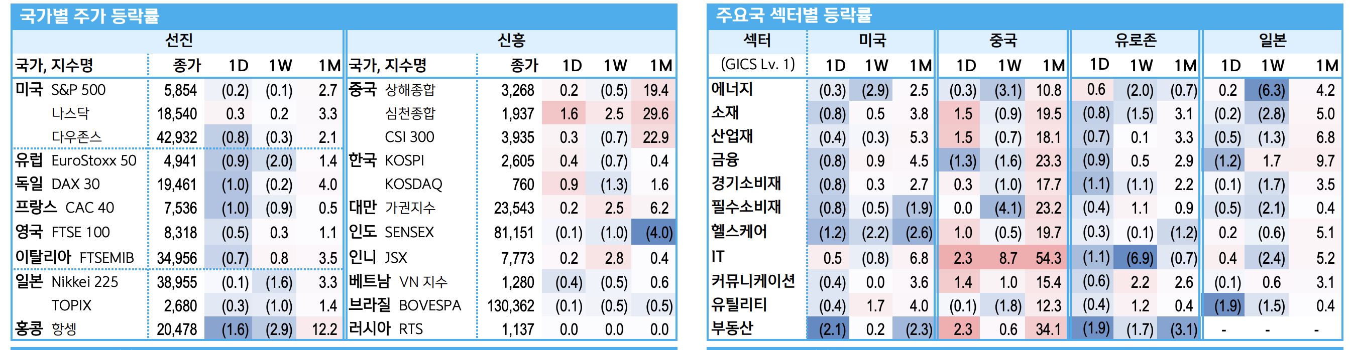 - 중국: 상해종합 +0.2% 상승, LPR 금리 인하 효과로 기술주 강세