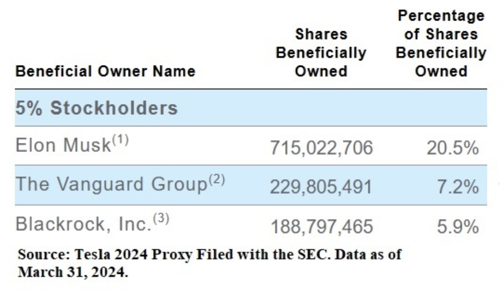 한편, 테슬라가 2025년 1월 30일 SEC(미 증권거래위원회)에 제출한 연례 보고서(10K)는 머스크가 은행 대출 담보로 테슬라 주식을 제공했고, 주가가 급락할 경우 추가 매도 압력이 발생할 수 있다고 경고하고 있다. 현재 머스크는 테슬라 주식의 20.5%를 보유하고 있으며 이는 그의 재산 대부분을 구성한다. 블룸버그는 테슬라 주가가 2024년 말 대비 약 40% 하락했다고 보도했으며, 특히 유럽 판매 감소로 최근 17% 급락했다.