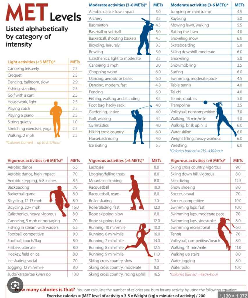 | 배구 (경쟁/해변, Volleyball, competitive/beach) | 8.0 | 역도 (고강도, Calisthenics, heavy, vigorous) | 8.0 | |